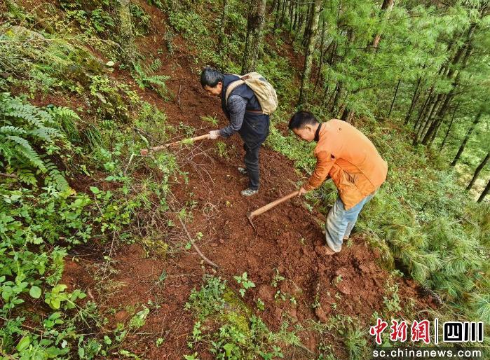 中新網(wǎng)四川新聞11月18日電 冬日清晨六點,海拔2600米的會東縣堵格鎮(zhèn)團圓村山林還籠罩在霧氣中,“松露獵人”管先科和曹世寶背著書包、手持小鋤,走向那片熟悉的松林。但今天的采挖,已不同于往日。