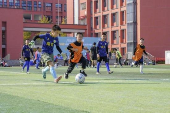 同一天,在江安路學(xué)校運(yùn)動(dòng)場(chǎng),“暖冬小腳丫”少兒足球?qū)官惖膽?zhàn)鼓也同步擂響。