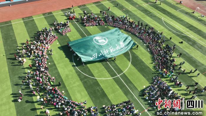 隨后,在家長(zhǎng)志愿者和老師們的共同托舉下,一面印有四川師范大學(xué)校徽、長(zhǎng)19.8米、寬9.8米的巨大校旗穿場(chǎng)而過,從小寶貝們頭頂上緩緩掠過……它承載著四川師范大學(xué)的深厚底蘊(yùn)與輝煌歷史,如同知識(shí)的海洋和精神的火炬,將大學(xué)的榮光覆蓋在每一個(gè)小小的身影上,將希望的種子播撒在每一顆幼小的心靈里。