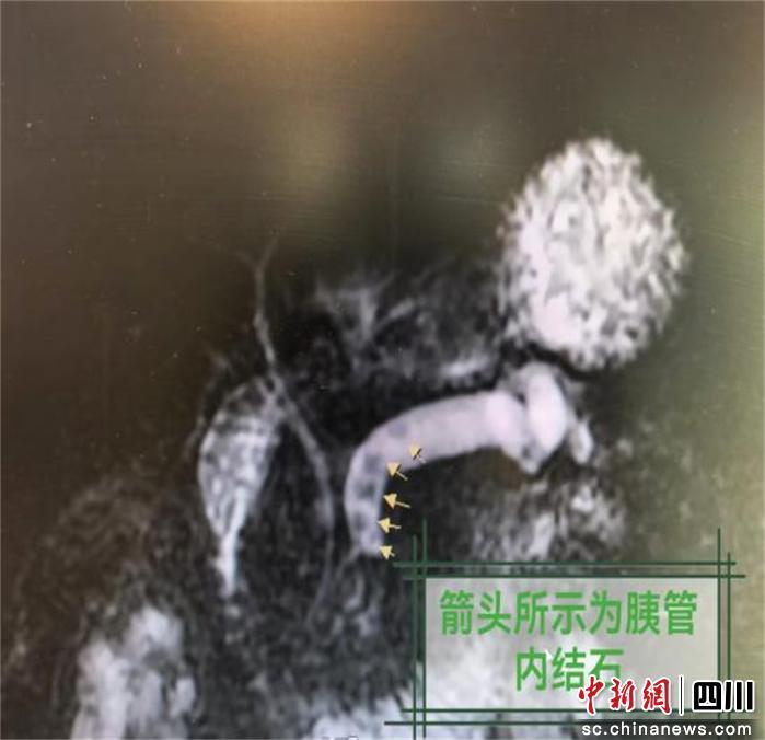 在成都市第五人民醫(yī)院消化內(nèi)科,膽胰組彭東曙主診醫(yī)師向小楊了解情況后耐心解釋,反復(fù)發(fā)作的急性胰腺炎常與飲食、生活習(xí)慣有關(guān),但更需警惕是否存在如膽結(jié)石、胰管異常或胰管結(jié)石等器質(zhì)性病因。隨后的系統(tǒng)檢查揭示了真正的罪魁禍首——核磁共振結(jié)果證實,小楊的胰管內(nèi)確實存在結(jié)石,正是這顆反復(fù)“作亂”的結(jié)石阻塞了胰液排出,導(dǎo)致胰腺出現(xiàn)水腫,引發(fā)炎癥反復(fù)發(fā)作的根本原因。