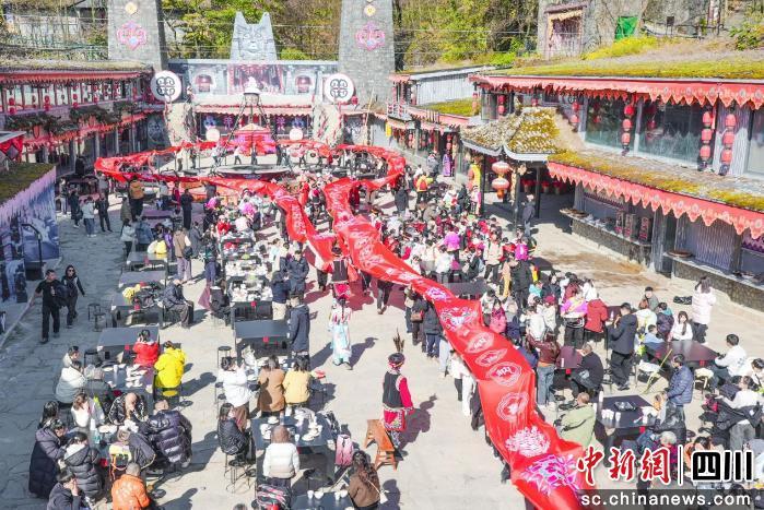 中新網(wǎng)四川新聞11月21日電 (唐倩)11月20日,四川北川羌族自治縣九皇山景區(qū)“吃羌宴、集羌福、鬧羌年暨第八屆九皇山非遺羌?xì)v年民俗文化節(jié)”正式啟幕。