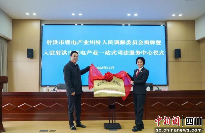 中新網(wǎng)四川新聞11月21日電 (李微雨)日前,射洪市鋰電產(chǎn)業(yè)糾紛人民調(diào)解委員會正式揭牌成立,并入駐射洪市鋰電產(chǎn)業(yè)糾紛一站式司法服務(wù)中心,射洪市委常委、政法委書記文加武,射洪市人民法院黨組書記、院長周素全,四川射洪經(jīng)開區(qū)黨工委委員、紀(jì)工委書記馮小春出席會議。