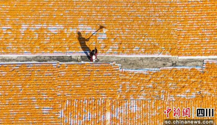 中新網(wǎng)四川新聞11月26日電(吳平華 陶坤 羅景萍)25日,在高縣勝天鎮(zhèn)五馬村,村民們趁著晴好天氣,忙碌著晾曬加工好的苕絲。暖陽下,金黃苕絲如鎏金鋪展,勾勒出一幅獨(dú)具特色的“曬冬”圖景。