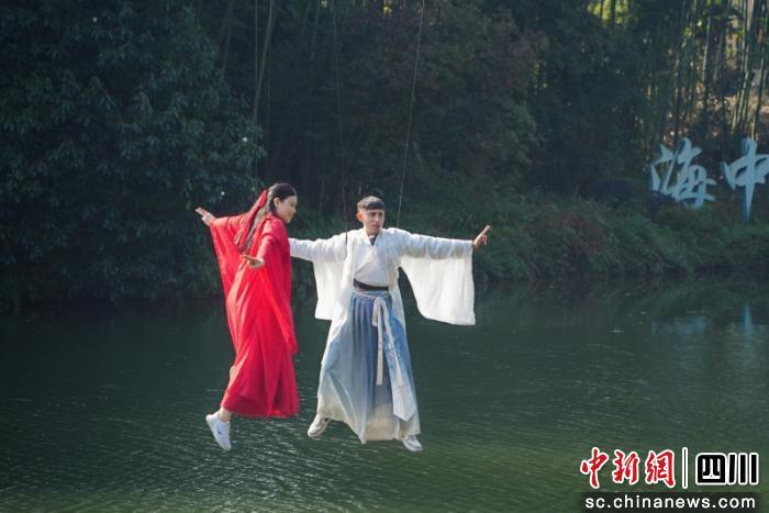 在蜀南竹海,7萬(wàn)余畝翠竹連綿起伏,清風(fēng)徐來(lái),竹影搖曳。采風(fēng)團(tuán)在海中海體驗(yàn)“武俠大片”同款吊威亞,身著古裝凌空而起,腳下碧波蕩漾,身旁竹濤陣陣,仿佛瞬間穿越至金庸筆下的武俠世界。在中華大熊貓?jiān),“津柯”“麒麟”“平平”“梵星”四只?guó)寶大熊貓憨態(tài)可掬,或悠閑進(jìn)食,或嬉戲玩水,“圈粉”全場(chǎng)。來(lái)自俄羅斯的馬克不停按下快門,“之前在成都看過(guò)大熊貓,但還是第一次這么近距離觀察。竹海里空氣清新,風(fēng)景如畫,太治愈了!”