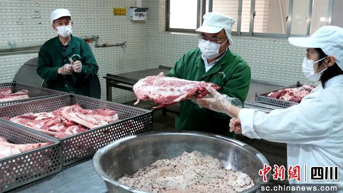 近日,正三和的生產車間里,經過一夜冷卻的土豬肉已初步定型。郭東文戴著手套,將提前炒制冷卻的食鹽與花椒均勻涂抹在肉上,指尖力道十足:“手工腌制才能讓鹽分滲得均勻,連縫隙都不落下,香料的香味也能被充分激發(fā)!