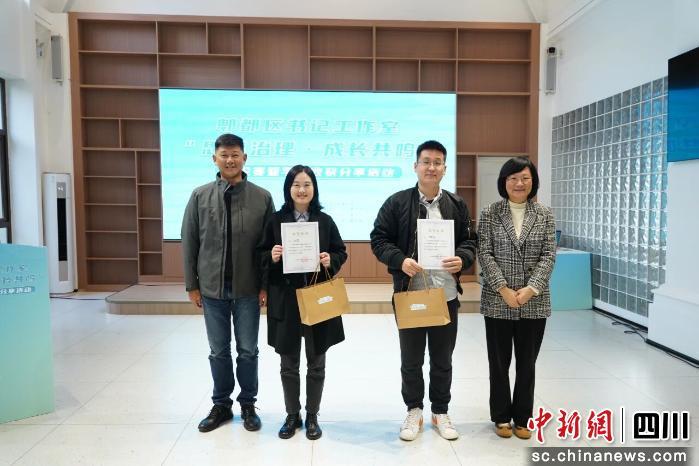 合興社區(qū)書記工作室學員、思源社區(qū)黨委書記楊婷,宋家林村黨委副書記吳蘇先后登臺,結合自身在書記工作室的學習經歷與工作實際,分享了成長路上的心得體會與治理思考。郫筒街道雙柏社區(qū)黨委書記熊珊、唐昌鎮(zhèn)先鋒村黨委書記任健作為2025年“蓉城先鋒·書記工作室”代表,分享了各自工作室的建設經驗與特色做法,為在場學員提供了寶貴的借鑒。