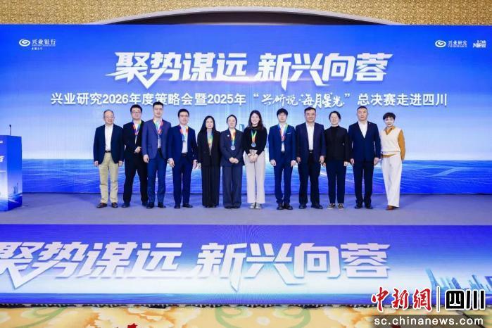 中新網(wǎng)四川新聞12月5日電 近日,興業(yè)銀行成都分行聯(lián)合興業(yè)研究在蓉成功主辦2026年度策略會暨2025年“興研說·每月星光”總決賽。本次活動旨在深度踐行“專家辦行”,立足金融、服務(wù)大局、賦能實體,為金融強國和中國式現(xiàn)代化建設(shè)貢獻更大力量。興業(yè)銀行成都分行黨委書記胡斌,興業(yè)研究黨委書記、院長劉健,興業(yè)銀行首席經(jīng)濟學家、興業(yè)研究學術(shù)評審委員會主席魯政委出席會議。興業(yè)銀行成都分行、興業(yè)研究主要負責人、500余名金融機構(gòu)及企業(yè)客戶代表參加會議。