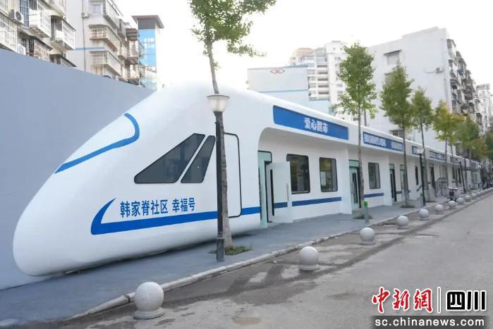 在社區(qū)“幸福里”車(chē)站廣場(chǎng),新改造的藍(lán)白色調(diào)的“韓家脊社區(qū)幸福號(hào)”列車(chē)煥然一新,愛(ài)心超市、家庭醫(yī)生工作站、愛(ài)心食堂等近10個(gè)功能區(qū)在“車(chē)廂”內(nèi)有序布局,讓居民在家門(mén)口就能享受到“一站式”便民服務(wù)。