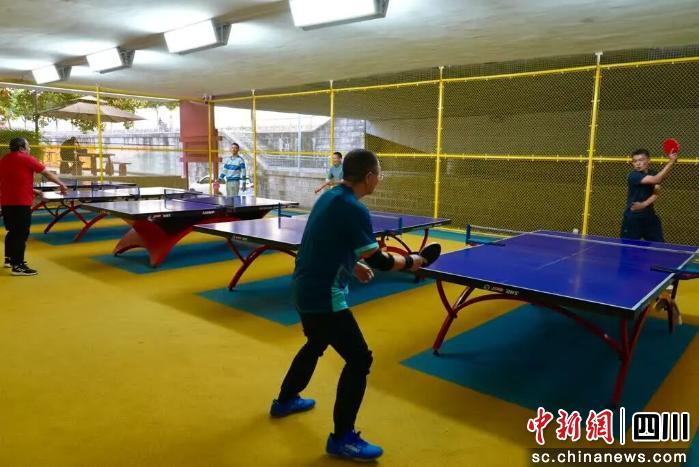 教室旁邊的乒乓球館同樣人氣爆棚,借用富樂(lè)大橋底面搭建的場(chǎng)館頂部,四周全圍欄防護(hù),200平方米的空間內(nèi),鋪設(shè)了嶄新的塑膠地面,5張球臺(tái)可供10人同時(shí)競(jìng)技。場(chǎng)館外的休息長(zhǎng)椅和儲(chǔ)物柜更顯貼心。居民們揮拍對(duì)打,喝彩聲與球拍撞擊聲交織成社區(qū)熱鬧旋律。