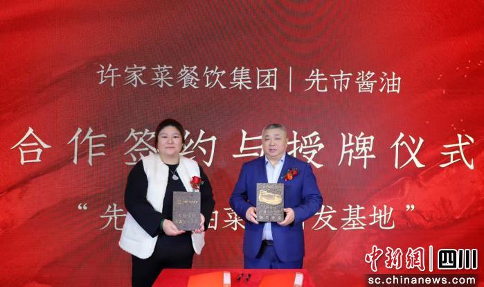 論壇現(xiàn)場,許家菜與先市醬油舉行合作簽約與授牌儀式,雙方將共建“先市醬油菜品研發(fā)基地”,推動傳統(tǒng)釀造技藝與川味小吃的融合創(chuàng)新。此外,天府掌柜獲頒“傳統(tǒng)文化特色品牌”,進一步彰顯其文化定位與社會認(rèn)可。