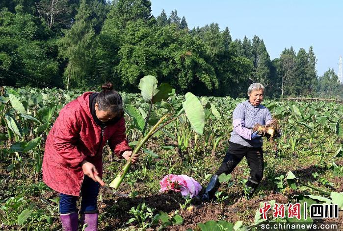 中新網(wǎng)四川新聞12月11日電 (鄧精華 鄒剛)“小心點挖,別碰傷芋子!”近日,營山縣淥井鎮(zhèn)香積村的香芋種植基地里,60多歲的張繼輝戴著草帽,手握鋤頭手把手指導工人們采收。田壟間此起彼伏的鋤頭挖土聲、竹筐碰撞聲,交織成一派豐收的熱鬧景象——經(jīng)過一年的培育,他種植的15畝廣西香芋正式迎來采收季,一個個飽滿圓潤的香芋從泥土里被挖出,成了村民手中的“金疙瘩”。這片15畝的廣西香芋種植基地,是這位退休教師交出的“鄉(xiāng)村振興新答卷”,不僅探索出大蒜間作、水稻輪作的科學種植模式,更讓7名村民實現(xiàn)家門口就業(yè),用“銀發(fā)力量”激活了鄉(xiāng)村“綠色經(jīng)濟”。