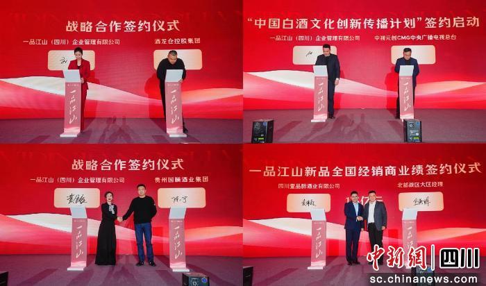發(fā)布會現(xiàn)場,多項高規(guī)格戰(zhàn)略合作集中落地彰顯品牌實力。一品江山與中央廣播電視總臺旗下CMG中視元創(chuàng)達成合作,共同啟動“中國白酒文化創(chuàng)新傳播計劃”,同時與酒龍倉控股集團、貴州國馬釀酒(集團)等核心伙伴結(jié)成產(chǎn)業(yè)同盟,并通過電子簽約與全國大區(qū)合作伙伴構(gòu)建市場共同體,標志著全國化布局邁入?yún)f(xié)同發(fā)展新階段。
