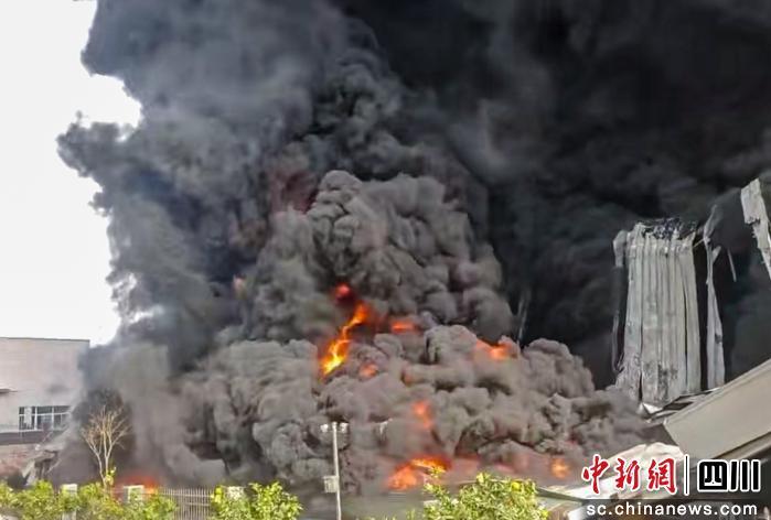 當(dāng)日11時44分,資陽市消防救援支隊指揮中心接到報警,稱位于資陽高新區(qū)的四川省希晨再生環(huán)?萍加邢薰緩S房發(fā)生火災(zāi)。接到報警后,資陽消防第一時間調(diào)派7個消防救援站共計22車、91人到場處置,支隊全勤指揮部遂行出動。抵達現(xiàn)場場后,經(jīng)偵察發(fā)現(xiàn),現(xiàn)場無人員被困,燃燒物質(zhì)主要為泡沫顆粒,泡沫塊,燃燒生成了大量的濃煙,黑煙。
