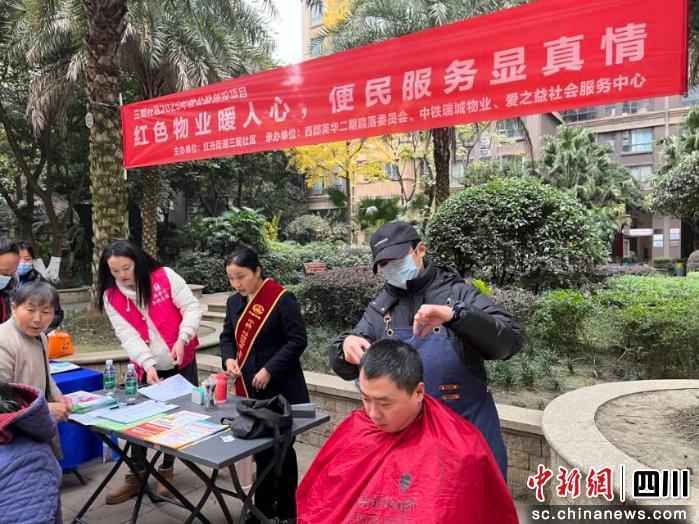 中新網(wǎng)四川新聞12月24日電 近日,成都市郫都區(qū)西郡英華二期小區(qū)里熱鬧非凡,一場暖意濃濃的便民服務(wù)吸引了眾多居民參與。這是中鐵二局瑞城物業(yè)與社區(qū)簽署結(jié)對共建協(xié)議后,與社區(qū)常態(tài)化開展便民服務(wù)的一個生動場景。