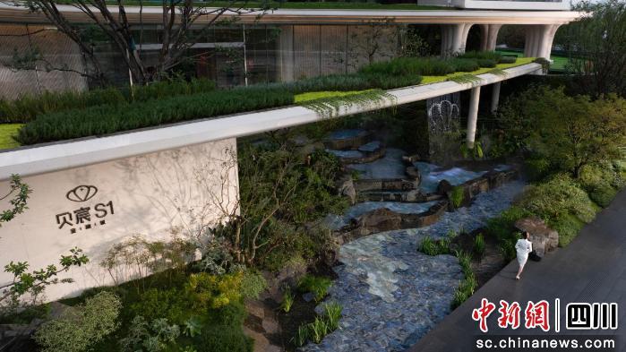 貝宸S1的生態(tài)基底,不僅是“造景”,更是“造血”。首先是眼睛看到的5D生態(tài)綠洲,整個(gè)示范區(qū)約200余種植物,通過(guò)五重垂直綠化構(gòu)建了一個(gè)城市“立體森林”。在地下車庫(kù)、下沉庭院、花園+架空層、空中花園、第五立面五個(gè)層級(jí),均實(shí)現(xiàn)綠化覆蓋,并在每個(gè)層級(jí)都有所創(chuàng)新。108個(gè)生態(tài)艙將科技悄然融入生態(tài)肌理。