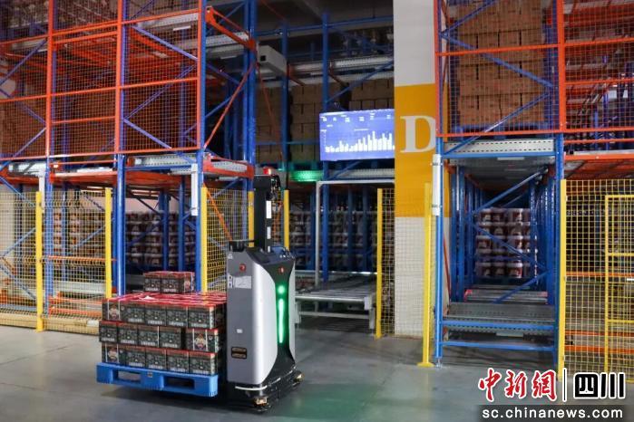 在丹丹豆瓣的智能倉(cāng)儲(chǔ)區(qū)內(nèi),原本平面的倉(cāng)庫(kù)變成了立體4層,大屏上實(shí)時(shí)可見(jiàn)各項(xiàng)數(shù)據(jù);AGV小車來(lái)回穿梭,將剛下線的產(chǎn)品運(yùn)往智慧倉(cāng)儲(chǔ)入庫(kù)口;隨后,貨物被RGV和提升機(jī)搬運(yùn)到指定位置。