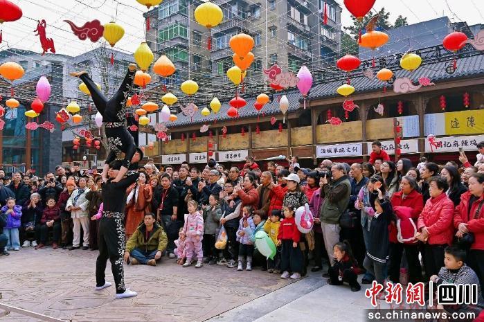 除了沉浸式大戲,雜技、傘舞、評書等民俗節(jié)目輪番上演,現(xiàn)場掌聲與歡呼聲此起彼伏。報恩塔廣場上,川劇變臉一登場便吸引全場目光,表演者噴火絕技一出,瞬間將現(xiàn)場氣氛推向高潮。趣味十足的新春游園活動同步開展,互動游戲引得市民踴躍參與,歡聲笑語不斷,處處洋溢著喜慶熱鬧的節(jié)日氛圍。