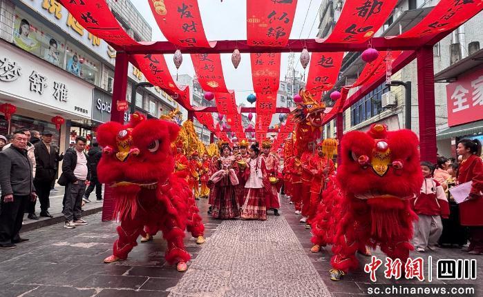 連日來,千年古縣—自貢富順處處張燈結(jié)彩、喜氣盈門。在文廟西湖景區(qū)內(nèi),紅燈高掛、楹聯(lián)映福,西湖碧波映古建,文廟飛檐裹新妝,2026富順豆花文化旅游季新春巡游活動(dòng)在此舉行;顒(dòng)期間,舞龍舞獅、古裝NPC、變臉、快閃舞蹈輪番登場(chǎng),豆花體驗(yàn)、古裝互動(dòng)、文創(chuàng)拍賣趣味不斷,市民游客闔家出游、歡聲笑語(yǔ),共赴一場(chǎng)年味十足、文韻濃厚的新春盛宴。