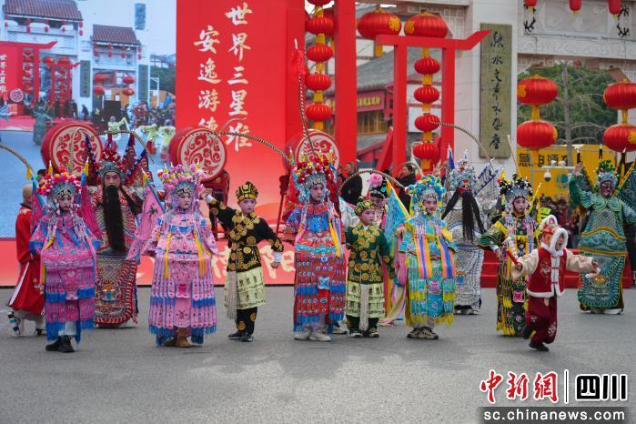 德陽經(jīng)開區(qū)將前沿科技與傳統(tǒng)民俗巧妙融合,巡游隊伍中,多臺智能機(jī)器人身穿大花襖驚艷亮相,它們或與演員共舞,或與觀眾互動,現(xiàn)代元素的加入讓傳統(tǒng)表演煥發(fā)新意,引得孩子們歡呼雀躍;旌陽區(qū)以德孝文化為魂,攜孝泉上九會民俗方陣與創(chuàng)新IP旌陽文旅吉祥物“旌灣灣”和“美塔塔”熱鬧共舞,機(jī)器狗與“籃球小哪吒”們驚喜同臺,科技感十足的機(jī)器狗靈活舞動,一群手持籃球、裝扮成哪吒形象的孩童們活力四射;羅江區(qū)依托調(diào)元文脈,以“五丁開山”戰(zhàn)舞再現(xiàn)三國豪情,氣勢磅礴,年輕演員們揮灑汗水,以剛勁有力的舞姿贏得陣陣喝彩;廣漢市主打古蜀祈福,用產(chǎn)業(yè)元素、廣漢龍獅舞以及市級非遺“漢州面具”交織出安康祥和的節(jié)日圖景;什邡市展示雪茄風(fēng)情,“虎鈕淳于戰(zhàn)鼓”震天,節(jié)奏鏗鏘;綿竹市以年畫之鄉(xiāng)為底色,羌族兒女踏歌送福,色彩斑斕;中江縣聚焦非遺煥彩,演繹英雄故里的時代新姿。