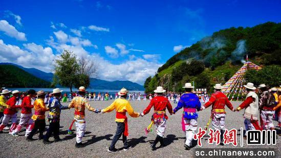 16日,鹽源瀘沽湖與木里香格里拉湖兩地同步舉辦慶典活動(dòng)。瀘沽湖會(huì)場(chǎng)以“湖畔交響”“山海致禮”“節(jié)日歡歌”“轉(zhuǎn)山轉(zhuǎn)!彼拇蟀鍓K呈現(xiàn)精彩內(nèi)容,摩梭青年跳起傳統(tǒng)甲搓舞、達(dá)巴誦經(jīng)祈福、悠揚(yáng)山歌與特色樂(lè)器演繹,配合豬槽船方陣,為觀眾帶來(lái)沉浸式文化體驗(yàn)。香格里拉湖會(huì)場(chǎng)同步推出環(huán)湖徒步、民謠音樂(lè)節(jié)、藏服展示和火秀表演等多元活動(dòng)。