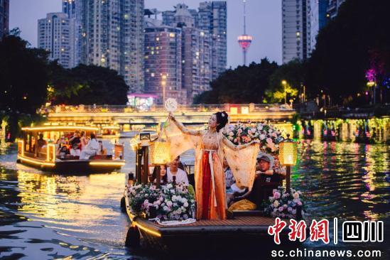中新網(wǎng)四川新聞9月23日電 中秋國(guó)慶雙節(jié)將至,成都夜游錦江以“芙蓉桂香滿錦江·月圓盛世慶華誕”為主題,深度挖掘成都傳統(tǒng)“八月桂市”文化,推出系列沉浸式文化體驗(yàn)活動(dòng),打造“以桂為媒、以芙蓉為韻”的雙節(jié)嘉年華。同時(shí),將20艘以上的游船化作沉浸式體驗(yàn)新空間,“李冰”“楊雄”“司馬相如”“卓文君”“劉備”等歷史人物將“穿越”到現(xiàn)代,在游船上與游客近距離互動(dòng),為游客呈現(xiàn)一場(chǎng)融合古典詩(shī)意與時(shí)代歡慶的文旅盛宴。