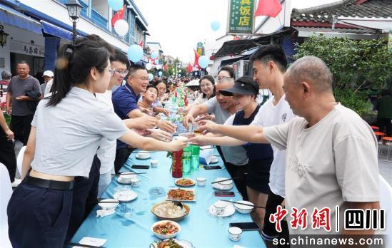 中新網(wǎng)四川新聞10月5日電 (姜強(qiáng))國(guó)慶假期,各地民俗活動(dòng)精彩紛呈。近日,在旌陽區(qū)孝泉鎮(zhèn)半邊街,120余米的長(zhǎng)桌宴熱鬧開席,60張長(zhǎng)桌沿街鋪開,串聯(lián)起地道美食與民族風(fēng)情,游客在煙火氣中品味舌尖美食,感受民族團(tuán)結(jié)溫情,為國(guó)慶增添濃郁的喜慶氛圍。