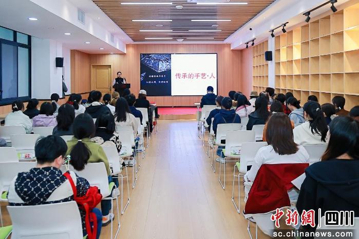主題講座環(huán)節(jié),成都漆藝市級非遺代表性傳承人張丹以《千年漆藝的當代新生》為題,帶領(lǐng)師生穿越時空,領(lǐng)略這項國家級非物質(zhì)文化遺產(chǎn)的獨特魅力。她從歷史源流、工藝精髓講到當代創(chuàng)新實踐,生動的講述讓古老技藝在年輕學子心中煥發(fā)出新的生命力。
