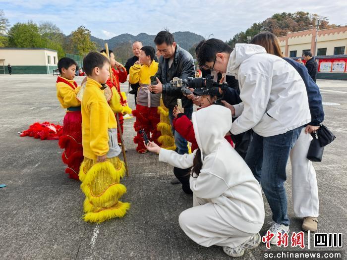 在李家鎮(zhèn)第二小學(xué),伴隨著激昂的鑼鼓聲,身著艷麗服飾的非遺傳承者們騰躍、翻滾,時(shí)而威風(fēng)凜凜展現(xiàn)“雄獅爭(zhēng)霸”,時(shí)而憨態(tài)可掬演繹“獅子戲球”,引得采風(fēng)團(tuán)成員陣陣喝彩,手機(jī)、相機(jī)紛紛對(duì)準(zhǔn)表演隊(duì)伍,將非物質(zhì)文化遺產(chǎn)分享至社交平臺(tái)。