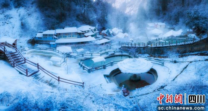 這種“冰與火”的體驗,沿著景區(qū)四大營地的海拔梯度層層展開。乘坐景區(qū)觀光車進(jìn)入核心景區(qū),首站是海拔1940米的一號營地,冬季銀裝素裹的原始森林,為旅程鋪墊了靜謐的基調(diào)。繼續(xù)前行至海拔2580米的二號營地,便可抵達(dá)景區(qū)溫泉體驗的核心區(qū)域。森林環(huán)抱間錯落分布著多處溫泉池,源頭“貢嘎神泉”出水口溫度高達(dá)92℃。據(jù)悉,這些溫泉均屬可飲可浴的醫(yī)療礦泉,富含偏硅酸、碳酸氫鈣等多種對人體有益的微量元素。