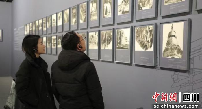 走進展覽現(xiàn)場,照片、圖紙、書信、手稿等展品有序陳列,其中既有梁思成親手繪制的古建筑測繪圖,也有夫婦二人與學界友人的往來書信!皼]想到大師們在如此艱苦的條件下還能潛心研究,這種精神太讓人敬佩了!崩钋f居民李鴻帶著朋友駐足凝視展品,一邊仔細觀看,一邊講述著李莊與營造學社的烽火情緣。