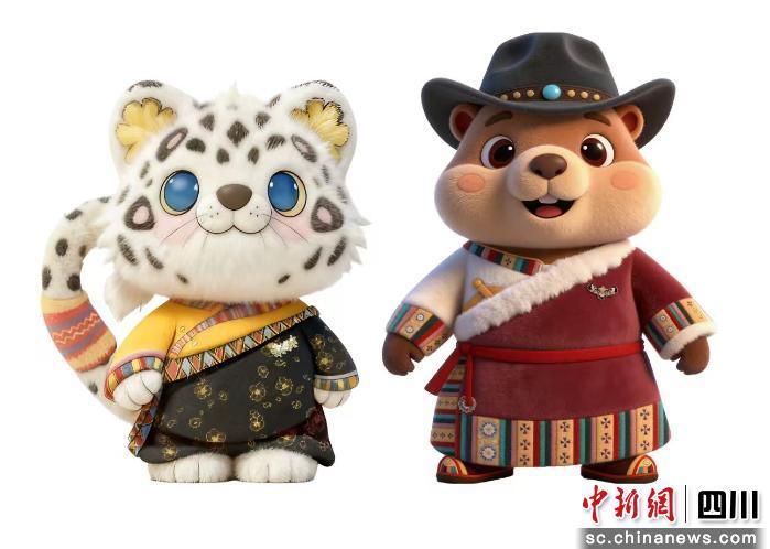 評(píng)審過程中,活動(dòng)組委會(huì)綜合考量文化契合度、創(chuàng)意表現(xiàn)、形象親和力、應(yīng)用空間以及傳播潛力,最終選擇了土撥鼠“阿土”和雪豹“阿布”這一對(duì)小伙伴。土撥鼠“阿土”的設(shè)計(jì)靈感來自高原上活潑的喜馬拉雅旱獺,圓嘟嘟的身子配上藏式服飾的小點(diǎn)綴,既有高原的野生萌趣,也帶著康巴人的真誠(chéng)與熱情;雪豹“阿布”則以珍貴的高原雪豹為原型,融入甘孜州州花——貢嘎海棠,展現(xiàn)出這片土地的自然和諧,也傳遞著靈動(dòng)與堅(jiān)韌的生命力。