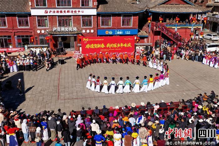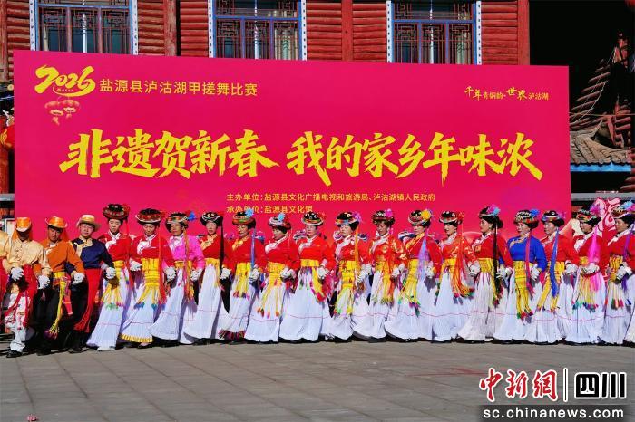 中新網(wǎng)四川新聞2月13日電 近日,涼山州鹽源縣瀘沽湖畔的甲搓舞比賽火熱開賽。九支來自瀘沽湖片區(qū)的隊伍身著特色服飾,伴隨著悠揚的曲調(diào),以粗獷又靈動的舞步同臺競技,最終多舍青年隊斬獲冠軍。2月13日,摩梭文化系列講座也正在火熱進行中。