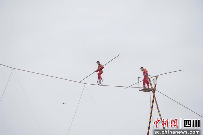 當天上午,仙海廣場人聲鼎沸,隨著非遺表演開場,掌聲與喝彩聲此起彼伏。作為全場焦點,非遺代表性傳承人及其團隊在高空繩索上演繹著極致平衡藝術(shù),每一步從容跨越都扣人心弦,當完成高難度轉(zhuǎn)身動作時,現(xiàn)場歡呼聲響徹全場!疤鸷沉,在電視上看就覺得厲害,親眼所見才知道什么是真正的‘高空絕技’!眮碜猿啥嫉挠慰屠钆颗e著手機全程錄制,語氣中滿是驚嘆。李女士說,她特意帶著家人來仙海過年,就是想感受這份獨特的非遺年味。