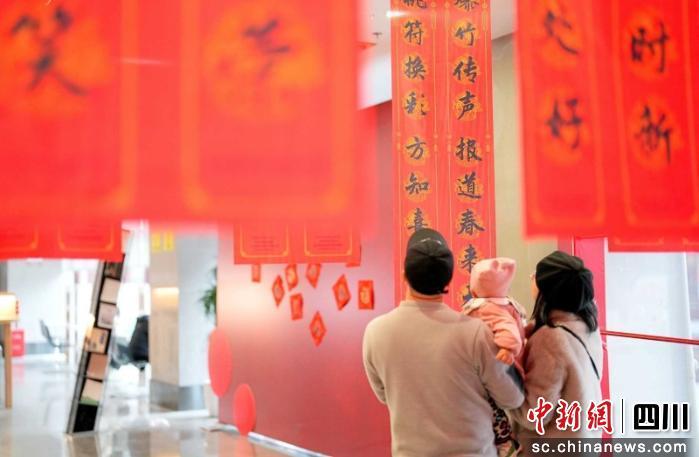 19日起,“來金圖過新年領(lǐng)交子紅包”活動接棒升溫。圖書館主入口處的“集百!薄懊裳勖!薄敖蛔釉S愿墻”“年味合影”“福袋盲抽”五大打卡點前,市民有序排隊參與。大家揮毫潑墨寫下福字,一張張承載美好祝愿的福字貼滿百福墻;蒙眼摸福點位上,參與者在親友的指引下摸索“福”字,不時傳來陣陣歡笑;交子許愿墻上,密密麻麻的許愿卡片掛滿墻面,既有對學(xué)業(yè)事業(yè)的期許,也有對家人朋友的祝福。