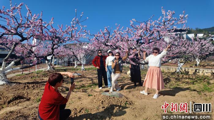 中新網(wǎng)四川新聞3月18日電 (周李昌 馮小珈)“這兒太安逸了,不用跑遠路,就能體驗田園風(fēng)光和吃農(nóng)家菜,每次來都耍不夠!”3月18日,漫步廣元市利州區(qū)大石鎮(zhèn)黎家花園農(nóng)家樂,粉嫩的桃花迎風(fēng)飄落,金色油菜花海綿延如畫,慕名而來的市民游客穿梭其中,歡聲笑語不斷。