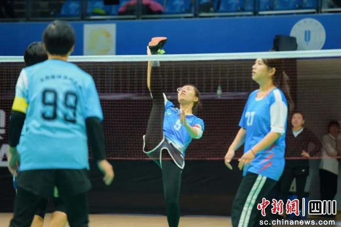 本次賽事設(shè)置網(wǎng)式毽球與花式毽球兩大類,涵蓋競技毽球、平踢毽球、四人混合接力計數(shù)賽和花式毽球三人賽等多種形式,既突出專業(yè)競技性,又兼顧群眾參與度與觀賞性,滿足不同年齡段、不同水平選手的參賽需求。開賽首日,場館內(nèi)氣氛熱烈,競技毽球?qū)辜ち摇⒐シ阑睾暇始姵;平踢毽球比拼團隊協(xié)作與穩(wěn)健技巧;花式毽球則以其靈動優(yōu)美的動作,展現(xiàn)出運動與藝術(shù)結(jié)合的獨特魅力!拔覀人感覺這次比賽大家的水平都是很高的,我們這次來主要是為了去學(xué)習(xí),提高自己的技術(shù)水平。”西南石油大學(xué)代表隊隊員張文芳表示!暗谝惶毂荣,女隊隊員稍微有些緊張,但這也是很好的鍛煉機會。比賽結(jié)束后,我們打算逛一逛簡陽,品嘗當?shù)氐奶厣朗!蔽靼搽η騾f(xié)會代表隊領(lǐng)隊魏驍斌介紹。