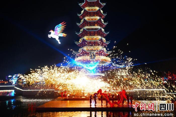 中新網(wǎng)四川新聞2月18日電 2月17日,綿陽方特“花火中國年”主題活動正如火如荼地舉辦;顒右浴懊袼讉髑椤⒖萍假x能、喜樂團圓”為核心,將非遺盛宴與新春年味深度融合,千架無人機天幕秀、火龍鋼花演出、煙火市集等精彩內(nèi)容輪番呈現(xiàn),吸引眾多游客攜家前來,在歡聲笑語中開啟沉浸式新春之旅,感受最地道的中國年味兒。