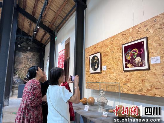據(jù)了解,本次展覽共展出80件民間工藝美術(shù)作品,涵蓋石藝、硯雕、筆藝、拼布、面塑、根雕、糧藝、剪紙、扎染等多個門類,按“歷史記憶”“科技創(chuàng)新”“美麗城鄉(xiāng)”“自然人文”四大主題分區(qū)陳列。其中,不少作品將現(xiàn)代元素與傳統(tǒng)技藝巧妙融合:有的以綿陽科技元素為靈感,把芯片紋理融入剪紙,讓傳統(tǒng)剪紙藝術(shù)煥發(fā)現(xiàn)代科技活力;有的以老綿陽城市風(fēng)貌為原型,用扎染、拼布等技藝還原記憶中的市井煙火;還有的聚焦科技城建設(shè)成果,以民間工藝視角記錄城市發(fā)展變遷。