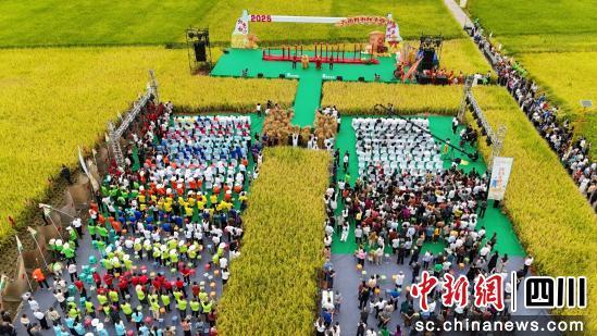 中新網(wǎng)四川新聞9月13日電 (鄒立洋)9月12日清晨,瀘州市古藺縣白沙場鎮(zhèn)的萬畝稻田里,沉甸甸的稻穗壓彎了禾稈,微風(fēng)拂過,金色稻浪翻滾,裹挾著清甜的稻香撲面而來。以稻田為舞臺,群眾為演員,2025年古藺縣農(nóng)民豐收節(jié)在此舉行。