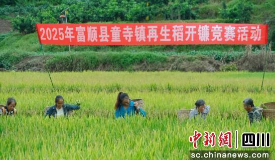 眼下,富順縣45.2萬畝再生稻迎來了豐收。近日,在自貢市富順縣童寺鎮(zhèn)老寨村舉辦的“富順縣再生稻開鐮競賽”現(xiàn)場,10余名參賽選手爭分奪秒地?fù)]舞鐮刀,力爭每一粒糧食都能歸入倉庫。