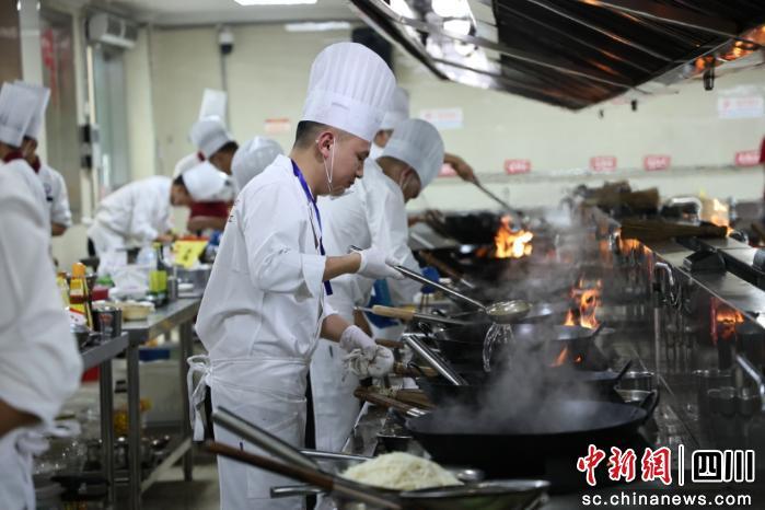 作為四川省“川字號(hào)”職工職業(yè)技能大賽的核心賽事,本次大賽高手云集,人才濟(jì)濟(jì),來自全省各地的百余名選手同臺(tái)競(jìng)技。競(jìng)賽分為中式烹調(diào)、中式面點(diǎn)、餐廳服務(wù)、團(tuán)餐4個(gè)項(xiàng)目。比賽現(xiàn)場(chǎng)競(jìng)爭(zhēng)激烈、精彩迭出。職工食堂團(tuán)餐賽區(qū),選手緊扣“食堂場(chǎng)景”核心,在營(yíng)養(yǎng)設(shè)計(jì)、成本核算上嚴(yán)格把控,作品兼顧職工飲食偏好、營(yíng)養(yǎng)均衡與素食、低糖等多元需求,盡顯現(xiàn)代團(tuán)餐創(chuàng)新實(shí)力;餐廳服務(wù)賽場(chǎng),選手以規(guī)范的儀容儀表和嫻熟技能,在宴會(huì)布置、酒水服務(wù)等環(huán)節(jié)傳遞專業(yè)溫度;中式面點(diǎn)環(huán)節(jié),傳統(tǒng)技藝與創(chuàng)新思維碰撞,造型精美、意蘊(yùn)豐富的作品層出不窮;中式烹飪賽場(chǎng)高潮迭起,選手們切煮烹炸間推出眾多私房菜、拿手菜,各色菜肴融匯地方特色,色香味俱佳,生動(dòng)詮釋川菜魅力。