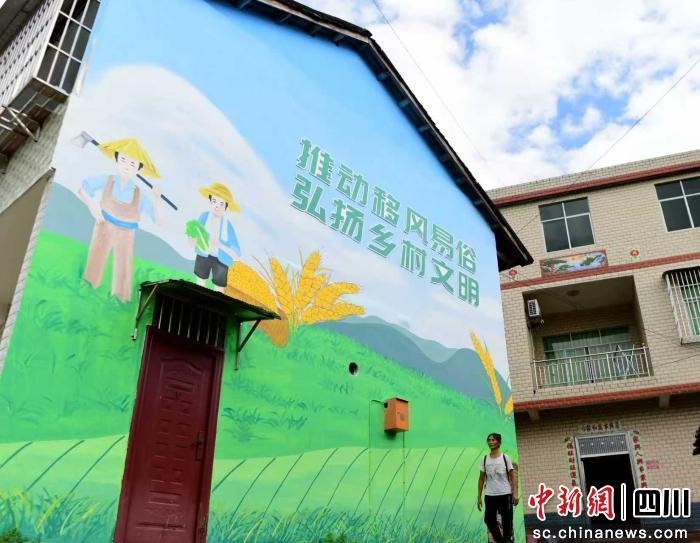 “這樣的大型彩繪村里有5幅,都畫在村道路旁村民家的外墻上,國(guó)慶節(jié)前全都畫好了!”南充文化旅游職業(yè)學(xué)院派駐三官村駐村第一書記羅濤介紹,彩繪內(nèi)容展現(xiàn)的是鄉(xiāng)風(fēng)文明、農(nóng)村新變化,把村民們?cè)卩l(xiāng)村振興中的精氣神都畫了出來。