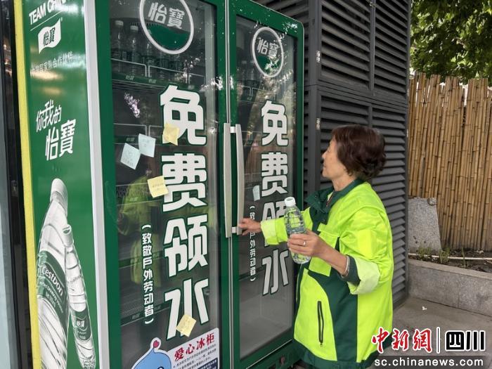 走進(jìn)驛站,門口右側(cè)的“愛心冰柜”總能吸引路人目光。這是四川省首個(gè)戶外勞動(dòng)者關(guān)愛站點(diǎn),已累計(jì)為戶外勞動(dòng)者、困難居民提供上萬瓶飲用水!霸谶@邊掃街干活,渴了隨時(shí)能來拿瓶水,太貼心了!杯h(huán)衛(wèi)工人周大姐邊拿水邊說。