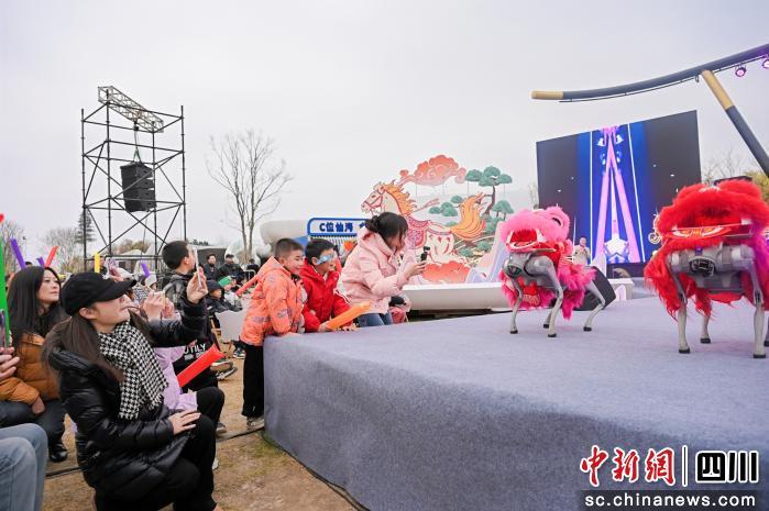 與此同時,C位仙海舞臺周邊人頭攢動,“青睞綿陽·樂動仙!毕珊!霸瓌(chuàng)之聲”音樂節(jié)激情開唱,瞬間點(diǎn)燃全場熱情。相較于常規(guī)音樂節(jié),本次演出的科技亮點(diǎn)格外吸睛——隨著動感的旋律響起,造型酷炫的機(jī)器人與憨態(tài)可掬的機(jī)器狗帶來一場精彩絕倫的熱舞表演。人形機(jī)器人亮出“功夫模式”、機(jī)器狗動作靈動可愛,引得臺下觀眾陣陣歡呼,不少游客拿出手機(jī)記錄這精彩瞬間,現(xiàn)場掌聲與歡呼聲此起彼伏。