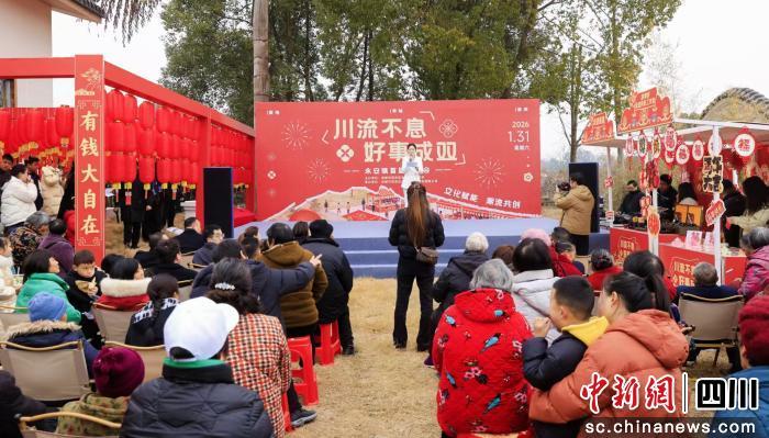 中新網(wǎng)四川新聞2月1日電(張卓 潘雯雯 徐琿) 1月31日,一場(chǎng)以“川流不息 好事成雙”為主題的“村糖會(huì)”在成都市雙流區(qū)永安鎮(zhèn)牧馬山都市鄉(xiāng)村會(huì)客廳熱鬧上演。這場(chǎng)集年俗體驗(yàn)、好物展銷、招商引才于一體的新年盛會(huì),不僅為廣大市民游客獻(xiàn)上一場(chǎng)煙火氣濃、年味兒更濃的新春盛宴,更為當(dāng)?shù)剜l(xiāng)村振興注入全新活力。