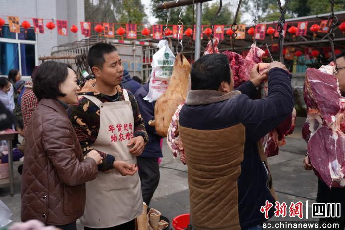中新網(wǎng)四川新聞2月9日電 (李洋 雷思敏)近日,在綿陽(yáng)市游仙區(qū)忠興鎮(zhèn)的第二屆“新春年貨趕場(chǎng)”集市上,土豬土羊、鮮果蔬菜、香腸臘肉等多種本土特色農(nóng)產(chǎn)品集中亮相,市民現(xiàn)場(chǎng)一站式采購(gòu)年貨,在煙火氣中感受地道鄉(xiāng)土年味。