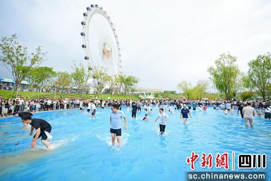 與成都世博園奇幻的“巨型稻草人王國”不同,相距不遠的三岔湖以其“潮玩夜游”特色吸引了大量游客。假日期間,三岔湖變身“潮玩圣地”,炫酷燈光點亮湖岸線,湖畔音樂派對唱響假期歡樂,潮玩集市趣味游戲接連不斷,三岔湖國際水上運動中心更是成為年輕人的運動天堂。