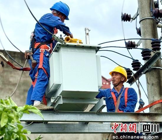 中新網(wǎng)四川新聞9月24日電 (記者 劉忠俊)9月24日,眉山市彭山區(qū)悅園村獼猴桃種植園里,國網(wǎng)眉山供電公司謝家供電所搶抓秋季施工黃金期,緊鑼密鼓開展變壓器增容改造工作,全力護航豐收季。