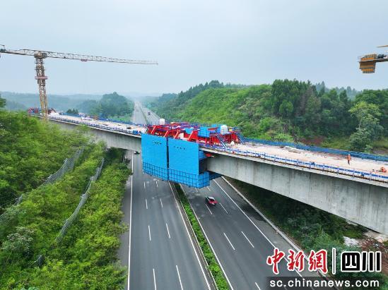 中新網(wǎng)四川新聞9月29日電。ㄓ浾摺⒅铱。9月29日,隨著最后一方混凝土的澆筑完成,成渝中線高鐵六標(biāo)跨渝蓉高速特大橋(72米+128米+72米)連續(xù)梁中跨順利合龍。為后續(xù)架梁、橋面系施工和無(wú)砟軌道鋪設(shè)奠定堅(jiān)實(shí)基礎(chǔ)。