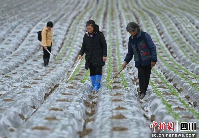 中新網(wǎng)四川新聞11月21日電 (周亮)20日,嘉陵江的晨霧還未散盡,蓬安縣金溪鎮(zhèn)紫石壩村的江灘上,已是一片喧鬧。村民們?nèi)宄扇,彎腰、覆膜、勾苗,動作麻利。覆好的地膜在朝陽下閃著銀光,一行行剛破土的蘿卜苗,給冬日的黃土地鋪上了綠色的條紋衫。